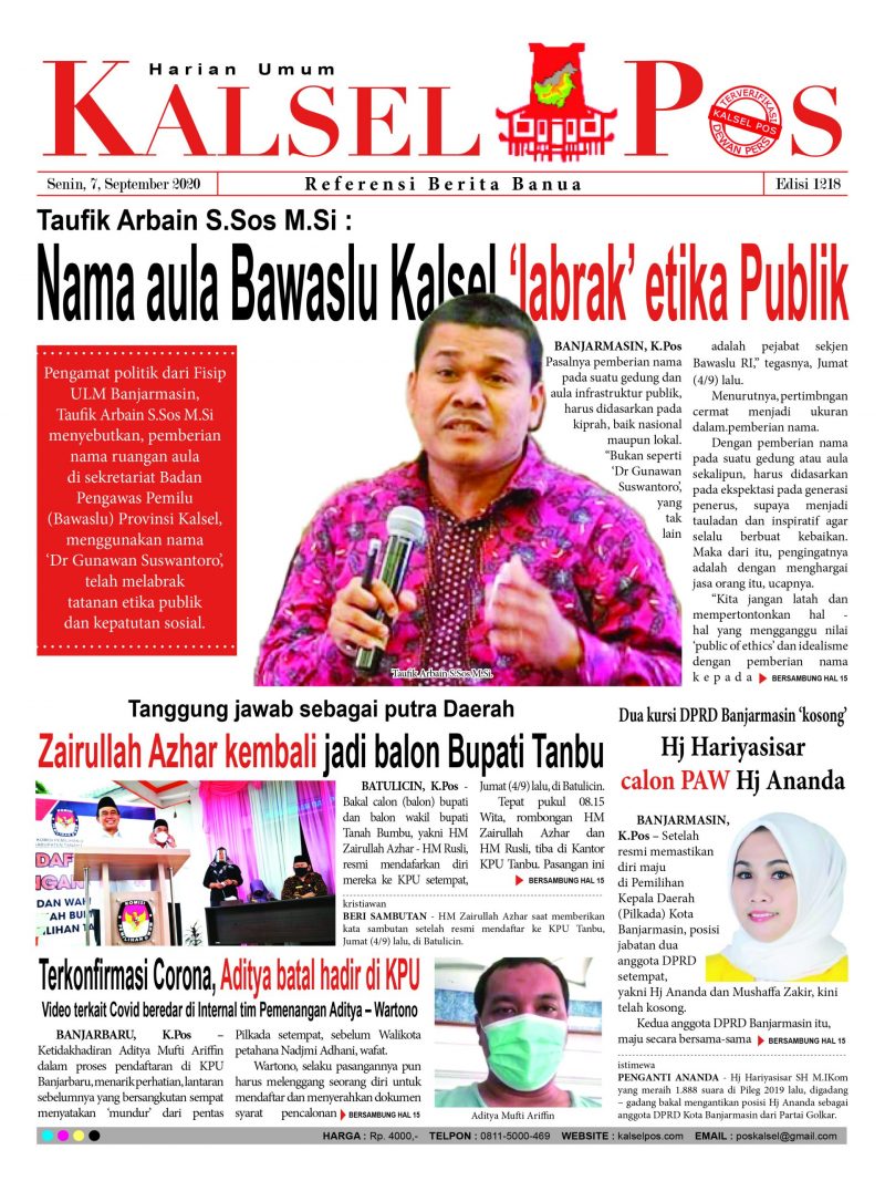 Epaper Kalselpos – 1218 Edisi Senin 7 September 2020