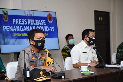 Banjarmasin, kalselpos.com – Kapolda Kalsel Irjen Pol. Dr. Nico Afinta, S.I.K., S.H., M.H., bersama PLT. Gubernur Kalsel Drs. H. Rudy Resnawan, M.B.A. serta Danrem 101/Antasari Brigjen TNI Firmansyah memimpin Press Release Penanganan Covid-19, Kamis (15/10/2020) pukul 10.30 Wita.