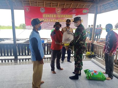 Dandim 1001 Amuntai, Letkol Inf Ali Ahmad Satriyadi secara langsung menyerahkan bibit ikan tawar kepada warga Masyarakat Desa Banyu Hirang.