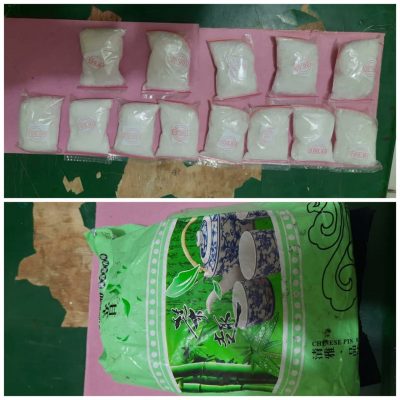 “Memang benar dari hasil penggeledahan kita dapati sebanyak 13 paket Narkoba jenis sabu dengan berat 1,3 Kg yang disimpannya di dalam kemasan teh merk China,” terang Kanit Reskrim yang akrab disapa Ginting itu.
