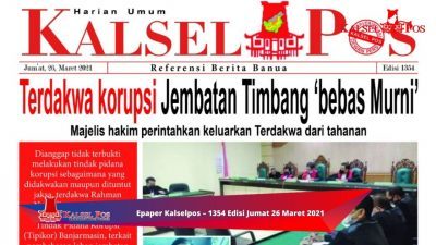 Banjarmasin,kalselpos.com – Inilah Epaper Kalselpos – 1354 Edisi Jumat 25 Maret 2021. Berbagai macam jenis berita di sajikan di 16 halaman.