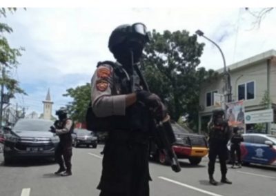 kalselpos.com – Setelah terjadi ledakan di depan Gereja Katedral di Jalan Kajaolalido, MH Thamrin, Kota Makassar, Provinsi Sulawesi Selatan Makassar, Sulawesi Selatan, Minggu (28/3/2021) sekitar Pukul 10.30 Wita, petugas kepolisian setempat langsung berjaga di lokasi dugaan bom bunuh diri.