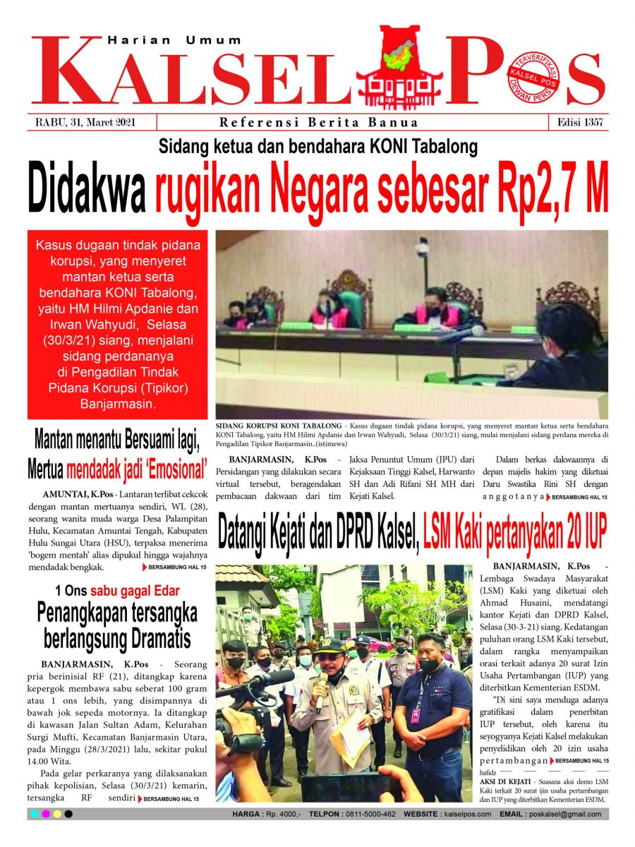 Sidang ketua dan bendahara KONI Tabalong Didakwa rugikan Negara sebesar Rp2,7 M – Kalselpos – 1357 Edisi Rabu 31 Maret 2021