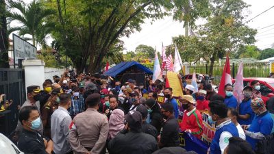 Sedangkan Aliansyah, Ketua LSM KPK-APP dalam orasinya membeberkan dugaan KKN pada paket pekerjaan belanja modal peralatan dan mesin pengadaan personal komputer sekretariat DPRD Kota Banjarbaru tahun anggaran APBD perubahan tahun 2020.