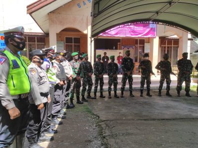 Arahan Kapolres Tabalong kepada personel pengamanan agar selalu waspada terhadap tamu keluar masuk areal Gereja Ave Maria untuk melaksanakan ibadah.