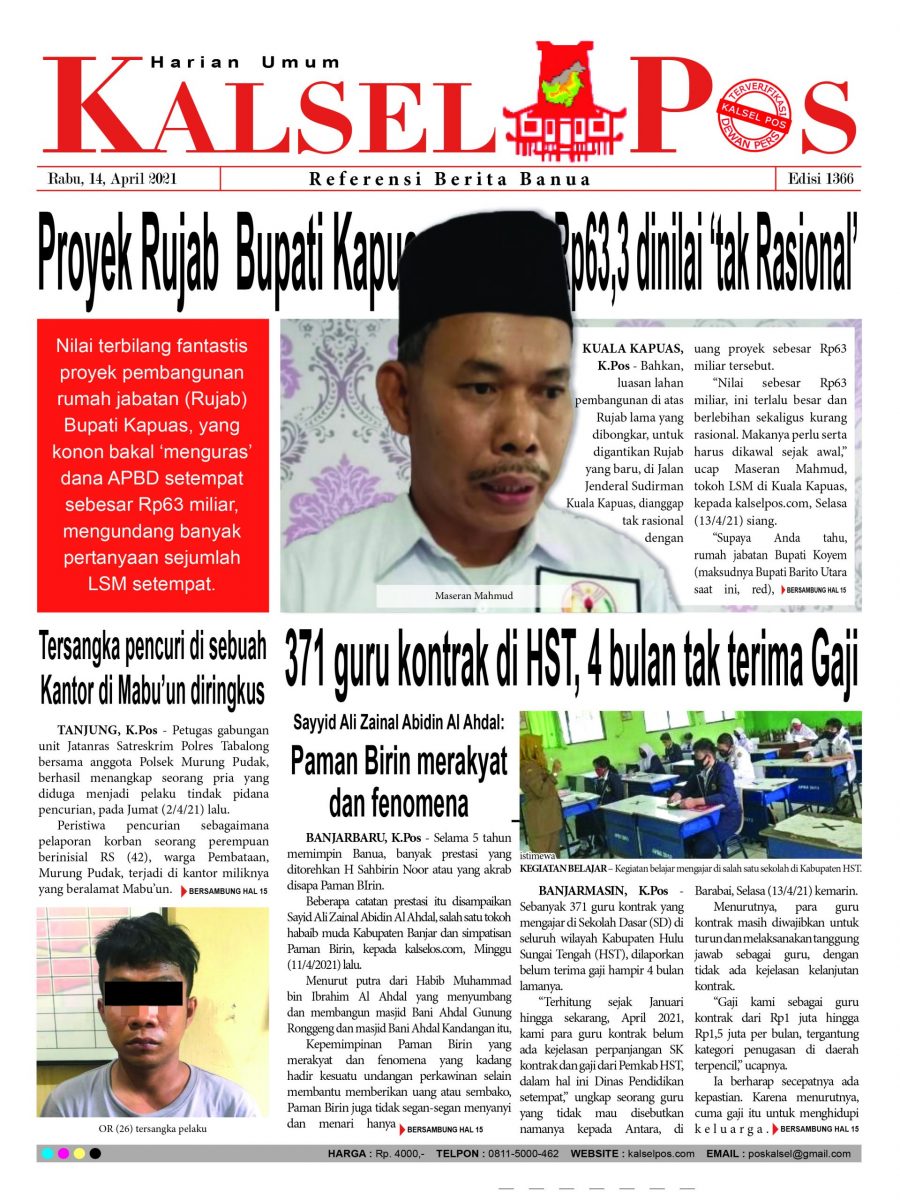 Beranda Epaper Proyek Rujab  Bupati Kapuas Rp63,3 dinilai ‘tak Rasional’ - Kalselpos 1366 Edisi Rabu 14 April 2021