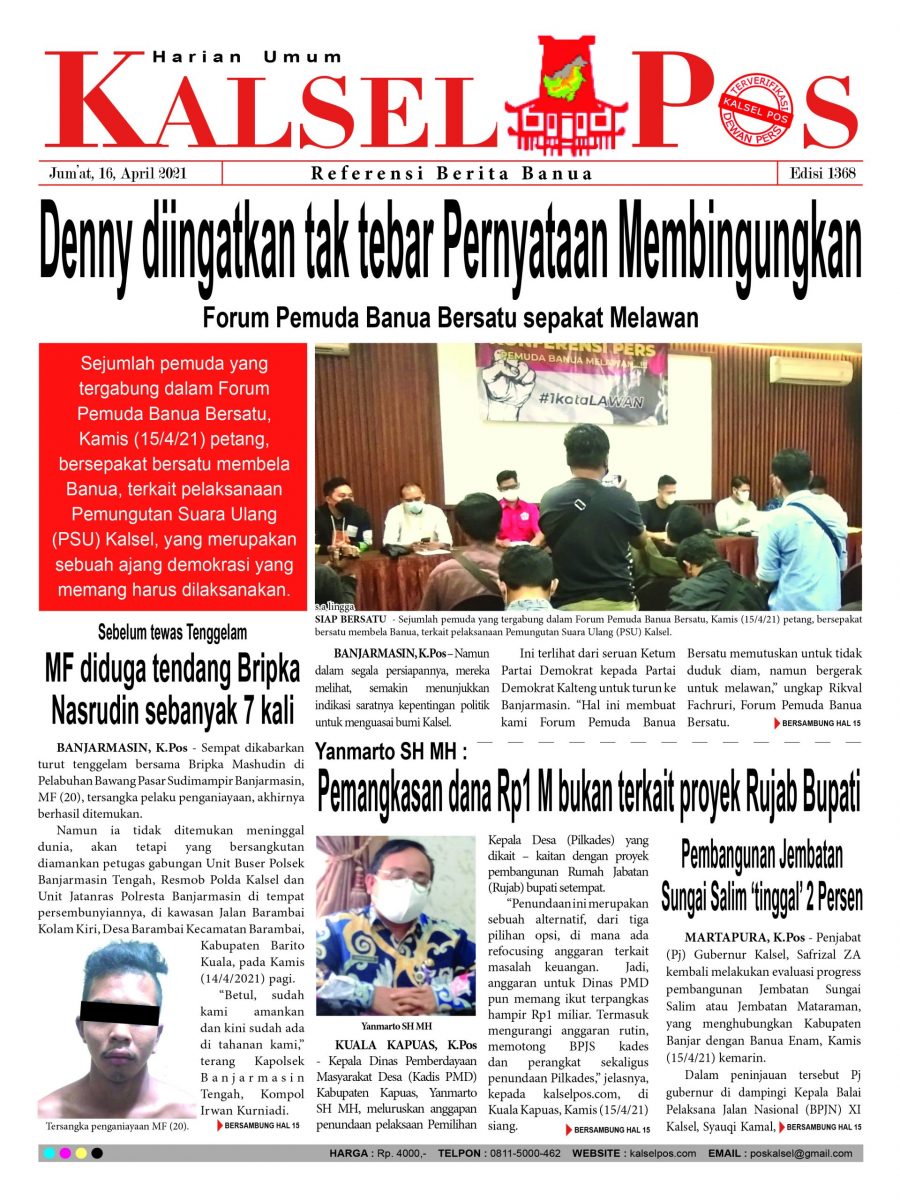 Denny diingatkan tak tebar Pernyataan Membingungkan – Kalselpos 1368 Edisi Jum’at 16 April 2021