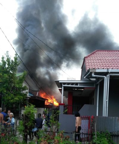 Dalam kejadian tersebut sedikitnya dua buah rumah dan salah satunya rumah kost lima pintu hangus dilalap api.
