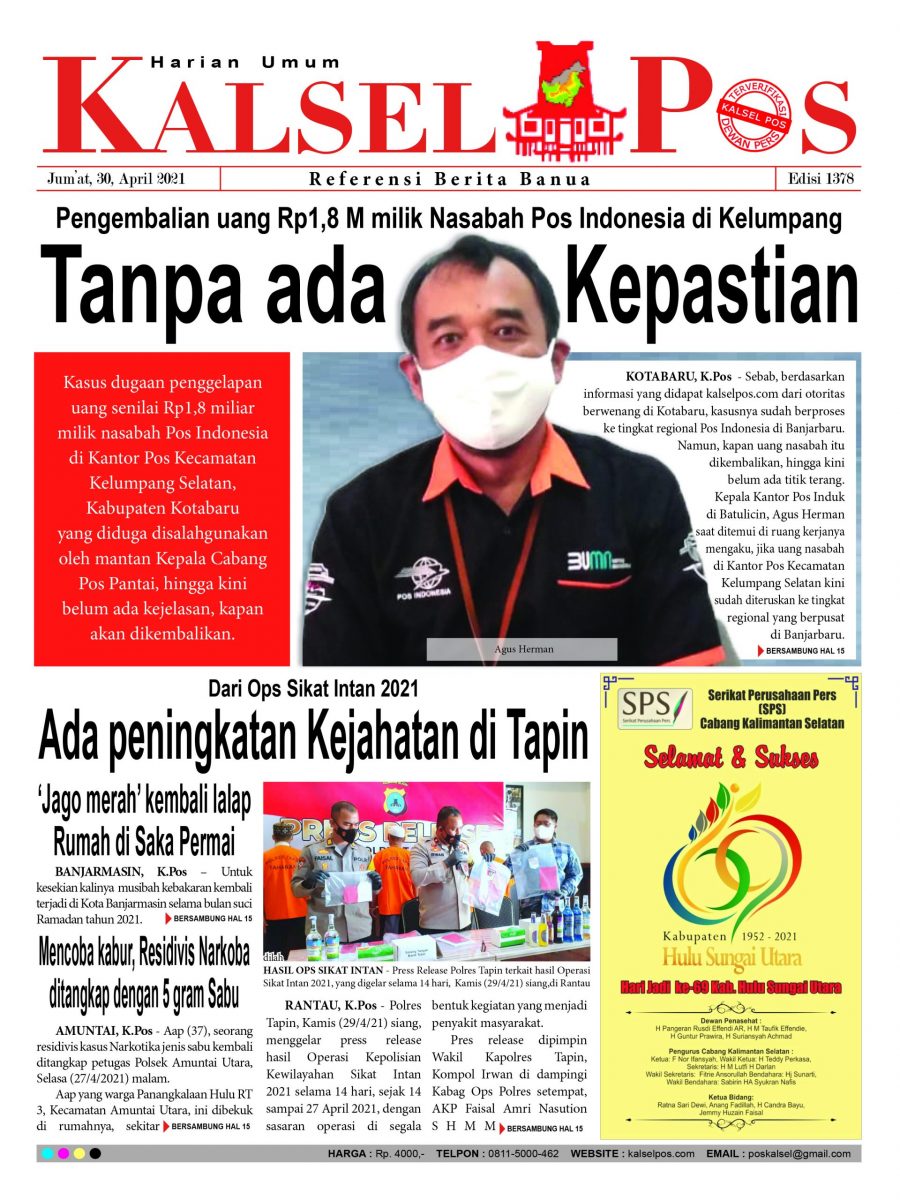 Beranda Epaper Pengembalian uang Rp1,8 M milik Nasabah Pos Indonesia di Kelumpang Epaper Kalselpos 1378 Edisi Jum'at 30 April 2021