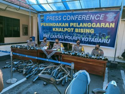“155 pengendara yang masih menggunakan Knalpot bising telah kami tindak, dan kami sita,” ujar Kapolres Kotabaru, AKBP Andi Adnan Syafruddin, didampingi, Waka, Kabag Ops, dan Kasat Lantas, dalam jumpa pers, Kamis (29/4) sore, kemarin.