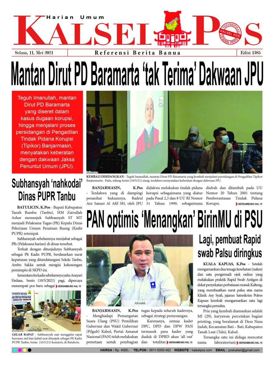 Mantan Dirut PD Baramarta ‘tak Terima’ Dakwaan JPU Epaper Kalselpos 1385 Edisi Selasa 11 Mei 2021