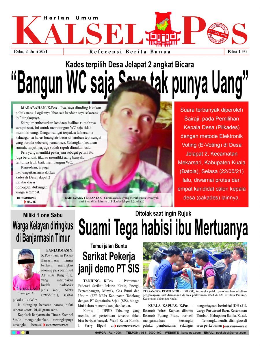 Kades terpilih Desa Jelapat 2 angkat Bicara “Bangun WC saja Saya tak punya Uang”. Epaper Kalselpos 1396 Edisi Rabu 2 Juni 2021