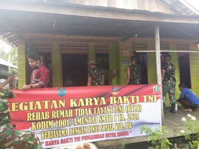 Dandim 1001 Amuntai melalui Pasiter Kapten Inf Rukijan mengatakan, pelaksanaan rehab rumah tidak layak huni ini bekerja sama dengan Dinas Sosial setempat dalam rangka pelaksanaan Karya Bakti TNI Satuan Komando Kewilayahan semester I tahun anggaran 2021.