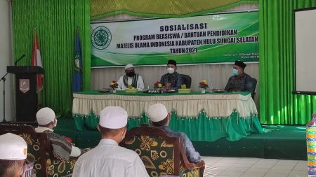 Kandangan, kalselpos.com– Majelis Ulama Indonesia (MUI) Kabupaten Hulu Sungai Selatan (HSS) bersama Pemerintah Kabupaten (Pemkab) setempat, sosialisasi program beasiswa bantuan pendidikan, Kamis (10/6) di Sekolah Tinggi Agama Islam (STAI) Darul Ulum Kandangan. Sosialisasi dibuka Bupati Kabupaten HSS Achmad Fikry didamping Ketua MUI Kabupaten HSS TGH Muhammad Riduan Basri (Guru Kapuh).