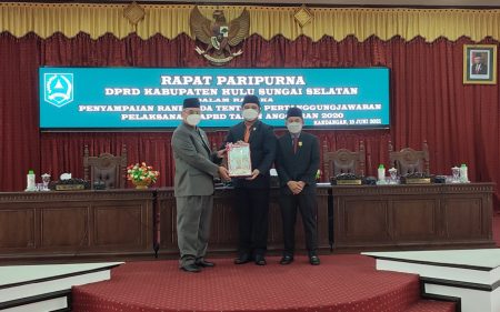 Kandangan, kalselpos.com – Bupati Hulu Sungai Selatan (HSS) Achmad Fikry sampaikan rancangan peraturan daerah (ranperda) Laporan Keterangan Pertanggungjawaban LKPj Anggaran Pendapatan dan Belanja Daerah (APBD) anggaran 2020, kepada Dewan Perwakilan Rakyat Daerah (DPRD), Selasa (15/6) dalam rapat paripurna yang dipimpin Ketua DPRD HSS Akhmad Fahmi.