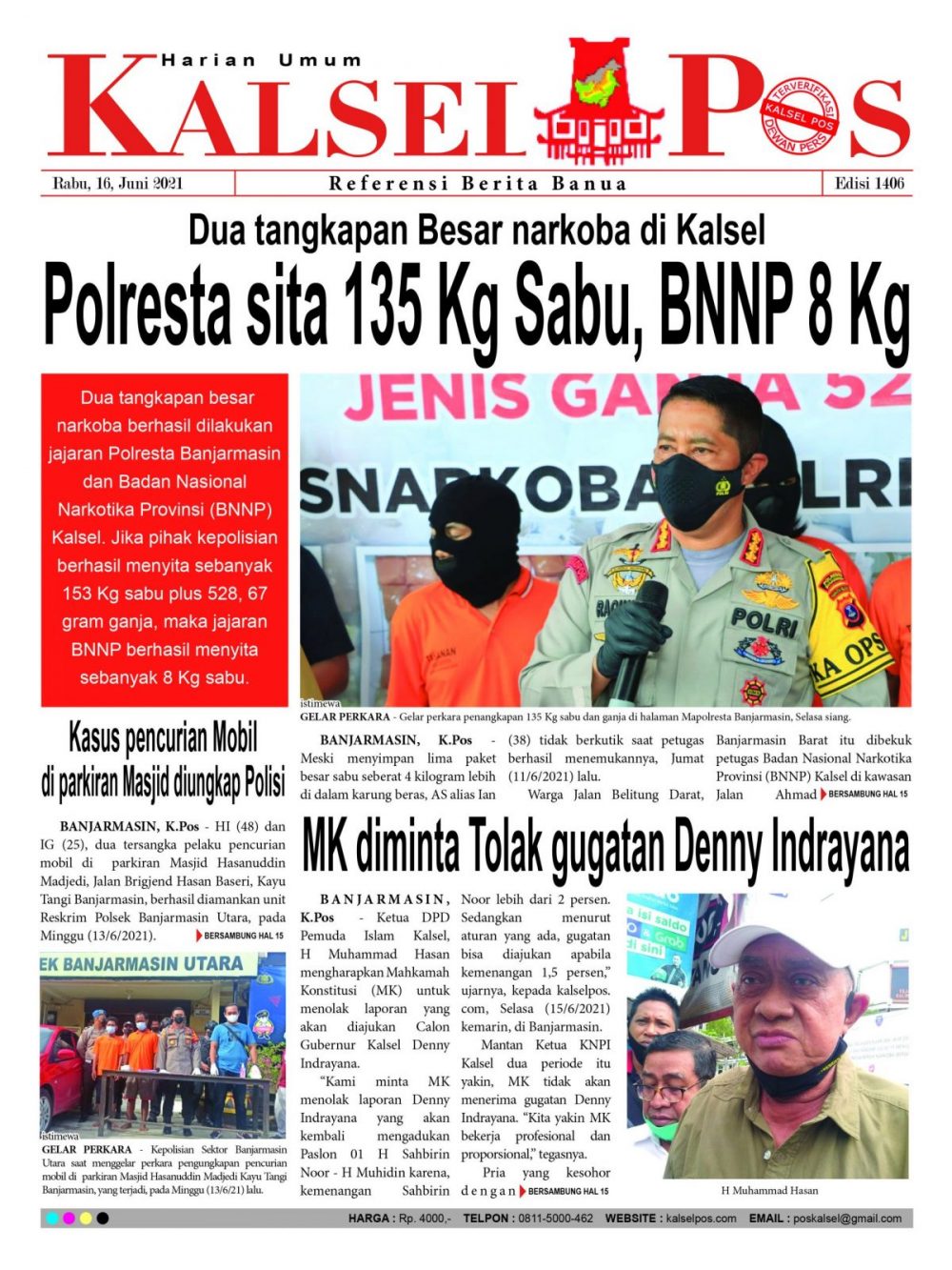 Dua tangkapan Besar narkoba di Kalsel, Polresta sita 135 Kg Sabu, BNNP 8 Kg. Epaper Kalselpos 1406 Edisi Rabu 16 Juni 2021