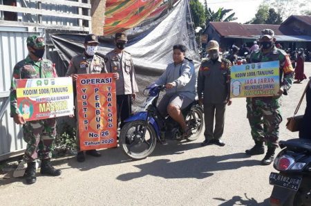 Tanjung,kalselpos.com – – Tiga Pilar Kecamatan Banua Lawas bersama Satgas Covid-19 melaksanakan Operasi yustisi penegakkan Perbup Tabalong Nomor 18 Tahun 2021. Rabu (16/6) siang.