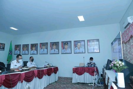 Kandangan,kalselpos.com– Sekretaris Daerah (Sekda) Kabupaten Hulu Sungai Selatan (HSS) Muhammad Noor didampingi Kepala Dinas Tenaga Kerja Koperasi Usaha Kecil dan Perindustrian Kabupaten HSS, Hendro Martono, mengikuti Rapat Koordinasi (Rakor) upaya pengendalian Covid 19, bidang usaha perekonomian, Rabu (16/6) secara virtual di Media Center Setda HSS.