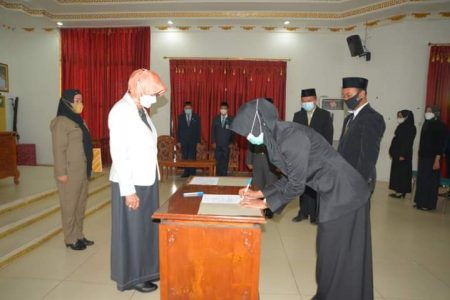 Marabahan, kalselpos.com – Bupati Hj Noormiliyani AS melantik dan mengambil Sumpah 115 pejabat fungsional di lingkungan Pemerintah Kabupaten Barito Kuala (Batola), Kamis (17/06/2021).