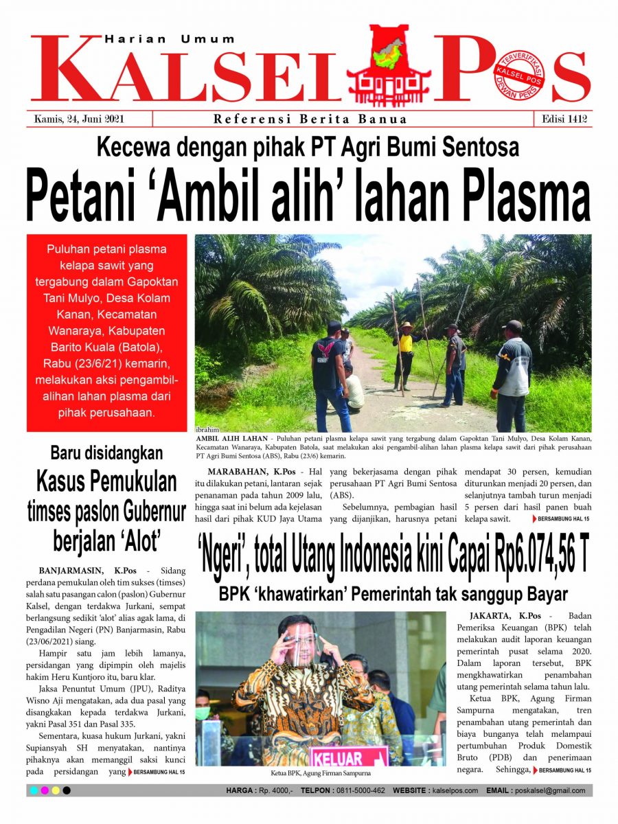 Kecewa dengan pihak PT Agri Bumi Sentosa, Petani ‘Ambil alih’ lahan Plasma. Epaper Kalselpos 1412 Edisi Kamis 24 Juni 2021