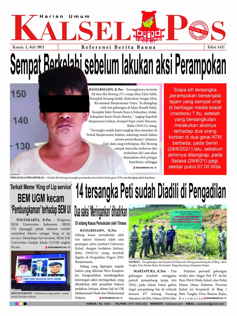 Beranda Epaper Sempat Berkelahi sebelum lakukan aksi Perampokan. Epaper Kalselpos 1417 Edisi Kamis 1 Juni 2021