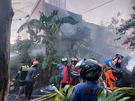 Dalam amukan ‘jago merah’ itu, setidaknya membuat sebuah bangunan ruko yang selama ini dijadikan agen sosis tersebut, hangus terbakar.