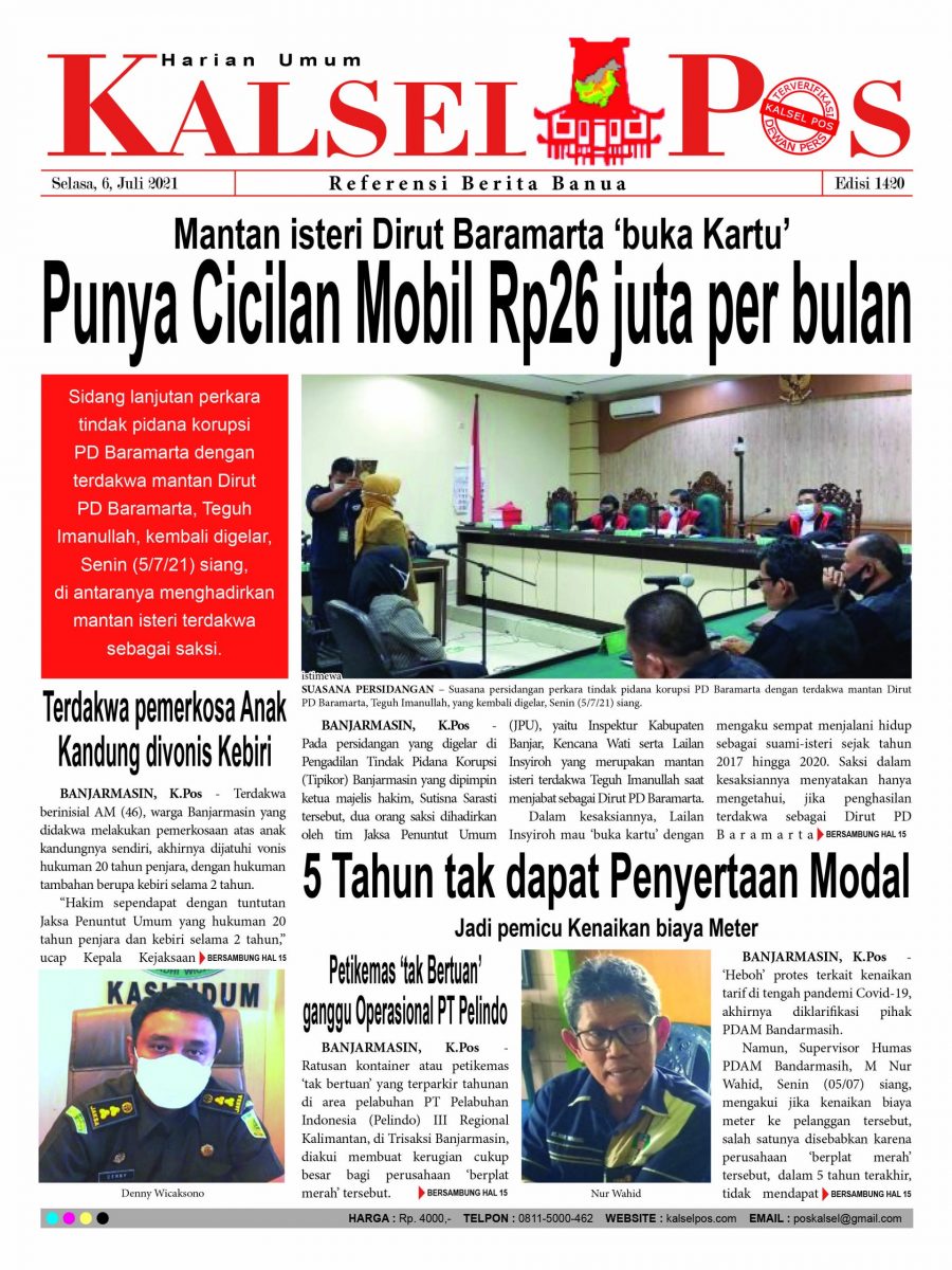 Mantan isteri Dirut Baramarta ‘buka Kartu’, Punya Cicilan Mobil Rp26 juta per bulan. Epaper Kalselpos 1420 Edisi Selasa 6 Juni 2021