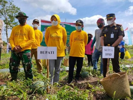 Dari luasan lahan ini mereka mampu menghasilkan sekitar 15 ton. Panen perdananya dilaksanakan Bupati Batola Hj Noormiliyani AS, Senin (05/07/2021).