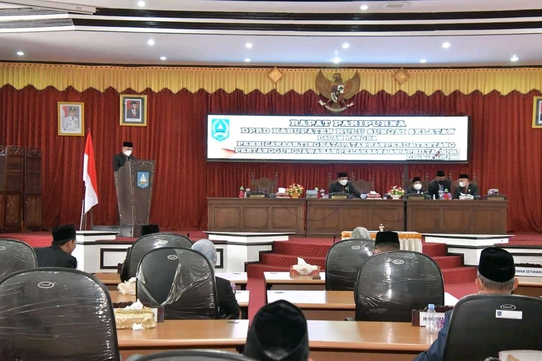 Kandangan,kalselpos.com – Enam fraksi Dewan Perwakilan Rakyat Daerah (DPRD) Hulu Sungai Selatan (HSS) menetapkan Rancangan Peraturan Daerah (Ranperda) Laporan Keterangan Pertanggungjawaban (LKPJ) Anggaran Pendapatan dan Belanja Daerah (APBD) 2020 Pemerintah Kabupaten (Pemkab) HSS menjadi Peraturan Daerah (Perda), Rabu (14/7) dalam rapat paripurna.