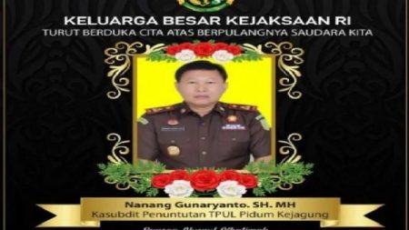 “Jaksa Agung RI beserta jajaran menghaturkan turut berdukacita atas meninggalnya Adhyaksa Hebat, yakni Nanang Gunaryanto SH MH, Kasubdit Penuntutan TPUL Pidum Kejagung RI.