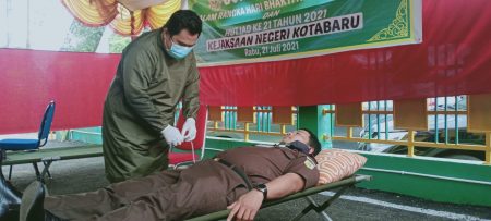 Kegiatan donor darah dan vaksinasi tahap I dilakukan di halaman kantor Kejaksaan Negeri Kotabaru diikuti sebanyak 50 orang.