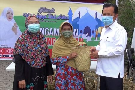 Lanjut bupati dalam pembagiannya kita tidak menggunakan kantongan plastic namun membagikan dengan bakul berbahan purun, diambil dari kerajian lokal khas Tapin. Hal ini mengikuti anjuran pemerintah pusat dalam mengurangi penggunaan kantong plastic.