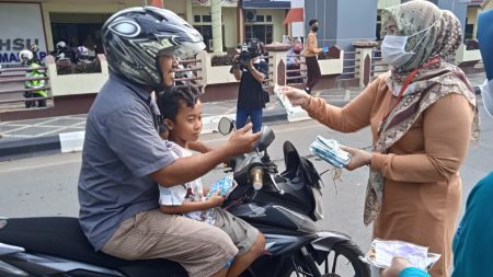 Masker dan Snack yang dibagikan ke pengguna jalan saat melintas ini bertepatan peringatan momen Hari Anak Nasional (HAN) 2021.