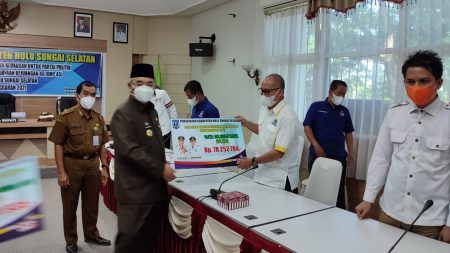 Kandangan,kalselpos.com– Pemerintah Kabupaten (Pemkab) Hulu Sungai Selatan (HSS) memberikan bantuan dana hibah kepada delapan partai politik (parpol) dan DewaN Harian Cabang 45 Kabupaten HSS. Bantuan diserahkan Bupati HSS Achmad Fikry kepada ketua parpol masing-masing dan pengurus DHC 45, di Aula Rakat Mufakat Setda HSS, Senin (26/7).