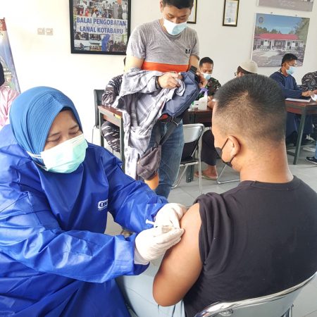 Bertempat di Balai Kesehatan Pangkalan TNI-AL Kotabaru Jalan KRI Yos Sudarso no 01 Desa Stagen Kecamatan Pulau Laut Utara kembali dilaksanakan serbuan vaksinasi Covid-19 tahap 1 untuk masyarakat maritim yang berada dipesisir Kabupaten Kotabaru, Kamis (5/8/2021).