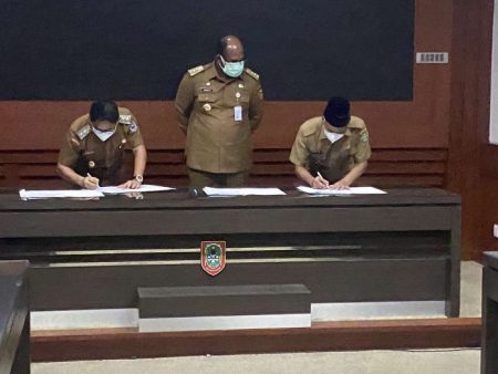 Sebelum tanda tangan dibubuhkan, Pj Gubernur melakukan mediasi tertutup di ruang kerjanya. Usai mediasi selama lebih kurang dua jam, Pj Gubernur keluar ruang kerja dan memberikan keterangan tercapainya kesepakatan tapal batas wilayah.