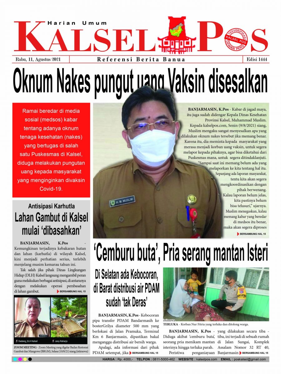 Oknum Nakes pungut uang Vaksin disesalkan. Epaper Kalselpos 1444 Edisi Rabu 11 Agustus 2021