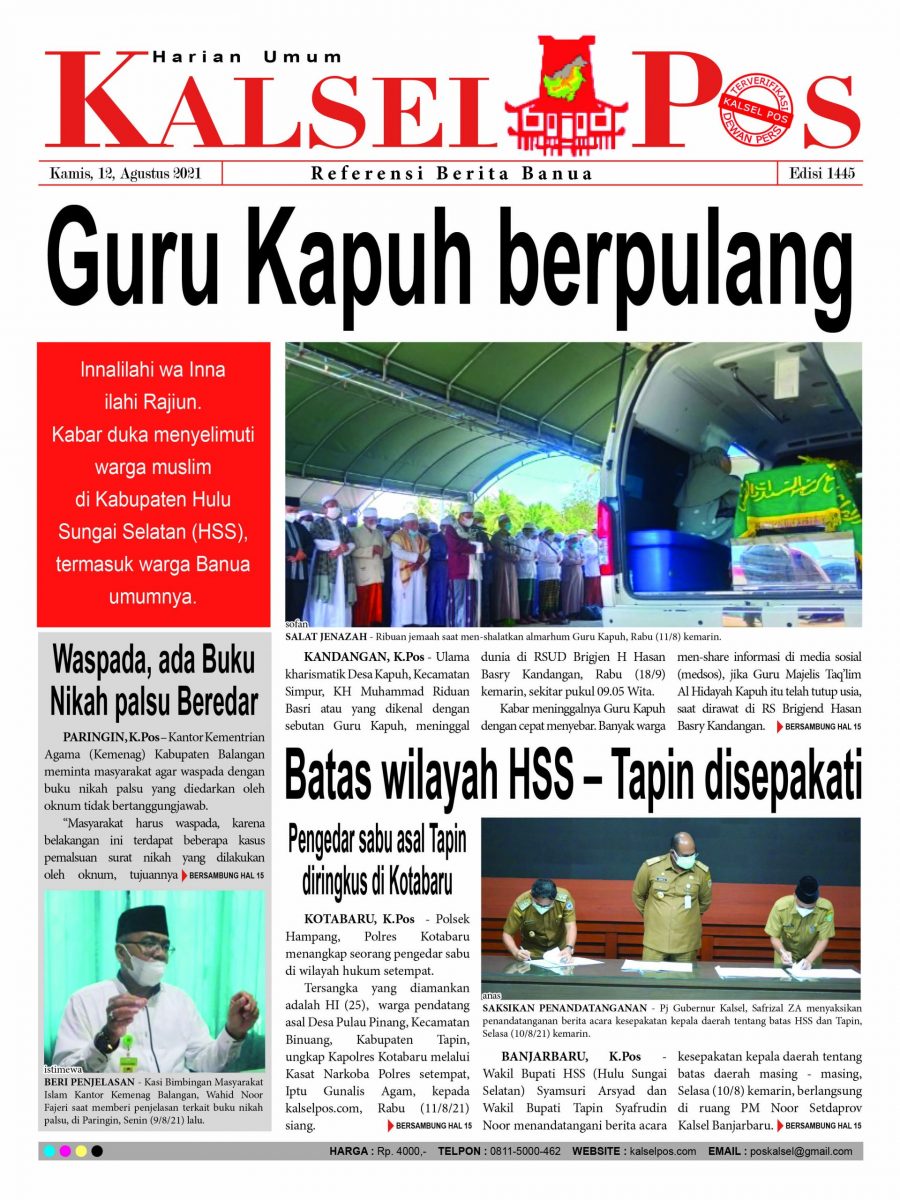 Guru Kapuh berpulang. Epaper Kalselpos 1445 Edisi Kamis 12 Agustus 2021