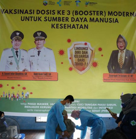 KOTABARU, kalselpos.com – Pemerintah Daerah Kabupaten Kotabaru melalui Dinas Kesehatan setempat melakukan vaksinisasi yang ketiga untuk Nakes di enam Puskesmas, Rabu (11/8/2021)