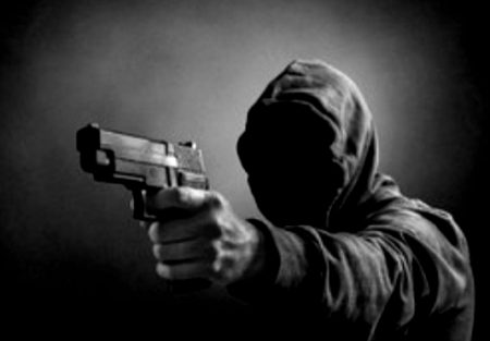 Pelaku penembakan menggunakan pakaian hitam dan abu-abu.