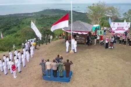 Kotabaru, kalselpos.com – Bupati Kotabaru H Said Jafar Alyadrus SH menghadiri penurunan bendera merah putih HUT RI ke-76 yang bertempat di Wisata Puncak Gunung Mamake yang berada diwilayah Desa Sarang Tiung Kecamatan Pulaulaut Sigam, Selasa (17/8/2021) sore.