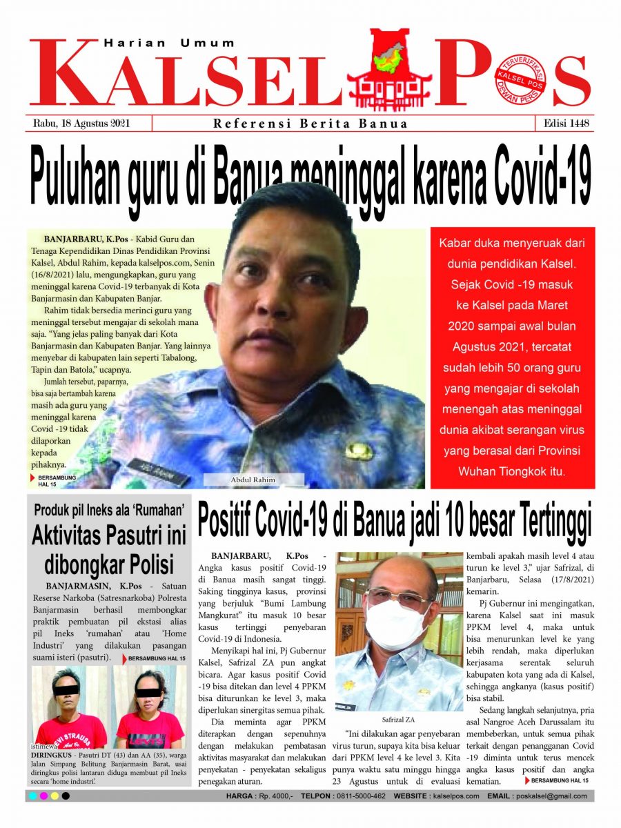 Puluhan guru di Banua meninggal karena Covid-19. Epaper Kalselpos 1448 Edisi Rabu 18 Agustus 2021