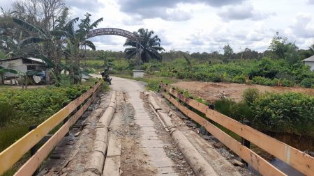 Jembatan penghubung antar desa yang terbuat dari bahan kayu ulin ini, kondisi kerusakannya sudah cukup parah, tepat di ray 6 penghubung antara Desa Tebing Rimbah dengan Desa Puntik Dalam Kecamatan mandastana.