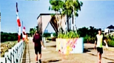 Sedangkan sepanjang tanggul untuk jalur olahraga itu dihiasi hamparan batu-batu dengan gelombang air laut yang tenang.