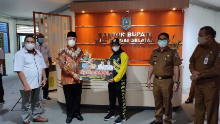 Uang saku bagi para atlet PON perwakilan Kalimantan Selatan (Kalsel) asal Hulu Sungai Selatan (HSS) tersebut diserahkan Bupati Achmad Fikry didampingi Wakil Bupati (Wabup) Syamsuri Arsyad, Selasa (31/8) di Loby Kantor Setda HSS.
