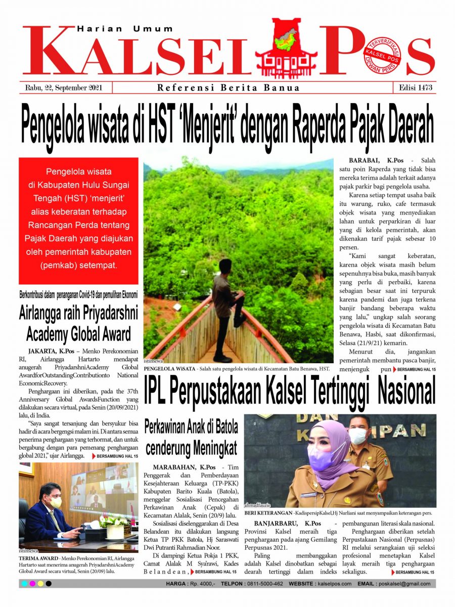 Pengelola wisata di HST ‘Menjerit’ dengan Raperda Pajak Daerah. Epaper Kalselpos 1473 Edisi Rabu 22 September 2021