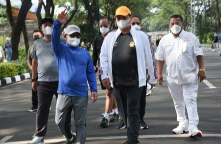 “Lari pagi itu enggak ada politiknya, yang ada keringatnya. Yang sehat-sehat harus dibangun,” jawab Airlangga.