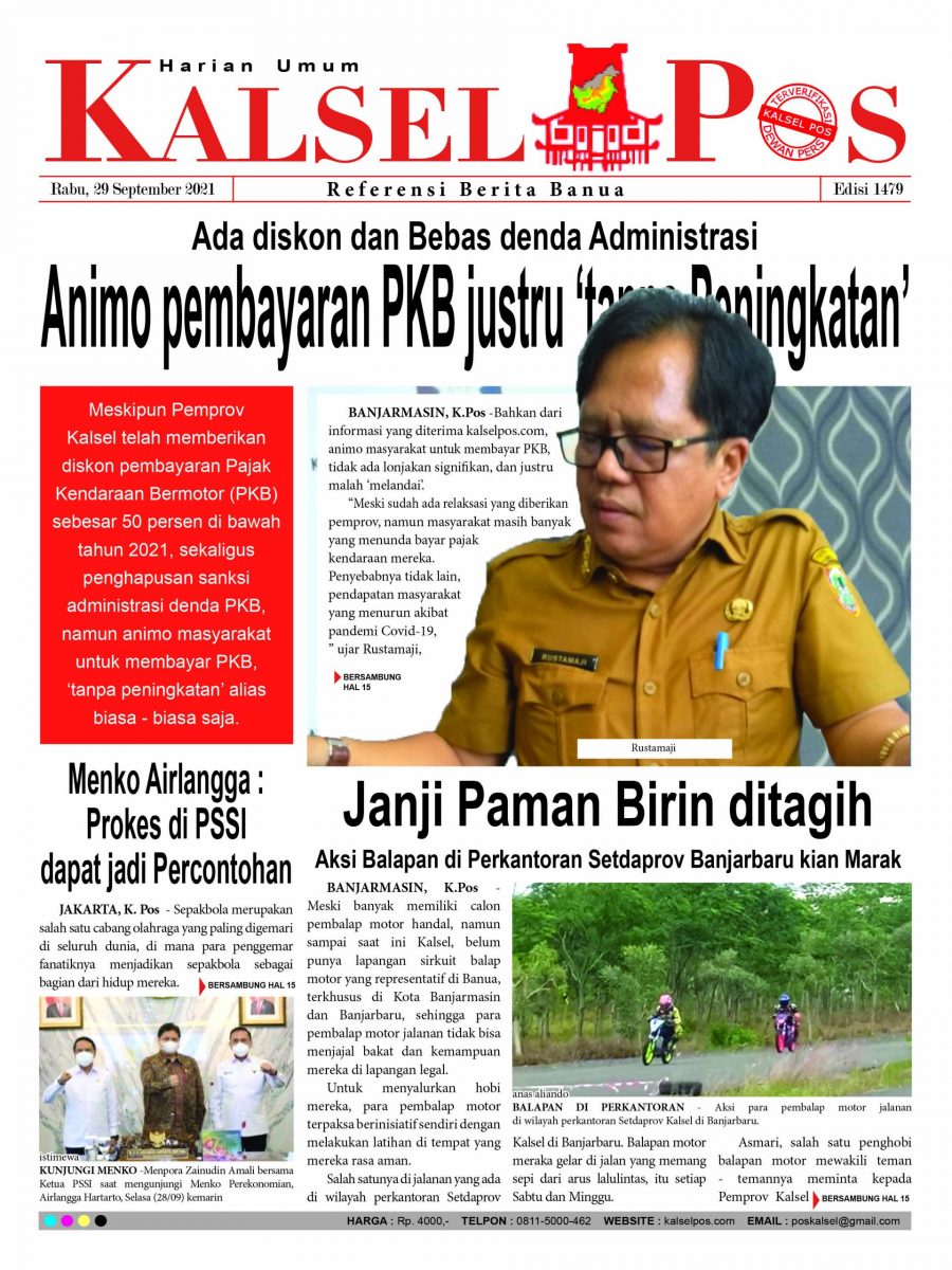 Ada diskon dan Bebas denda Administrasi, Animo pembayaran PKB justru ‘tanpa Peningkatan’. Epaper Kalselpos 1478 Edisi Rabu 29 September 2021