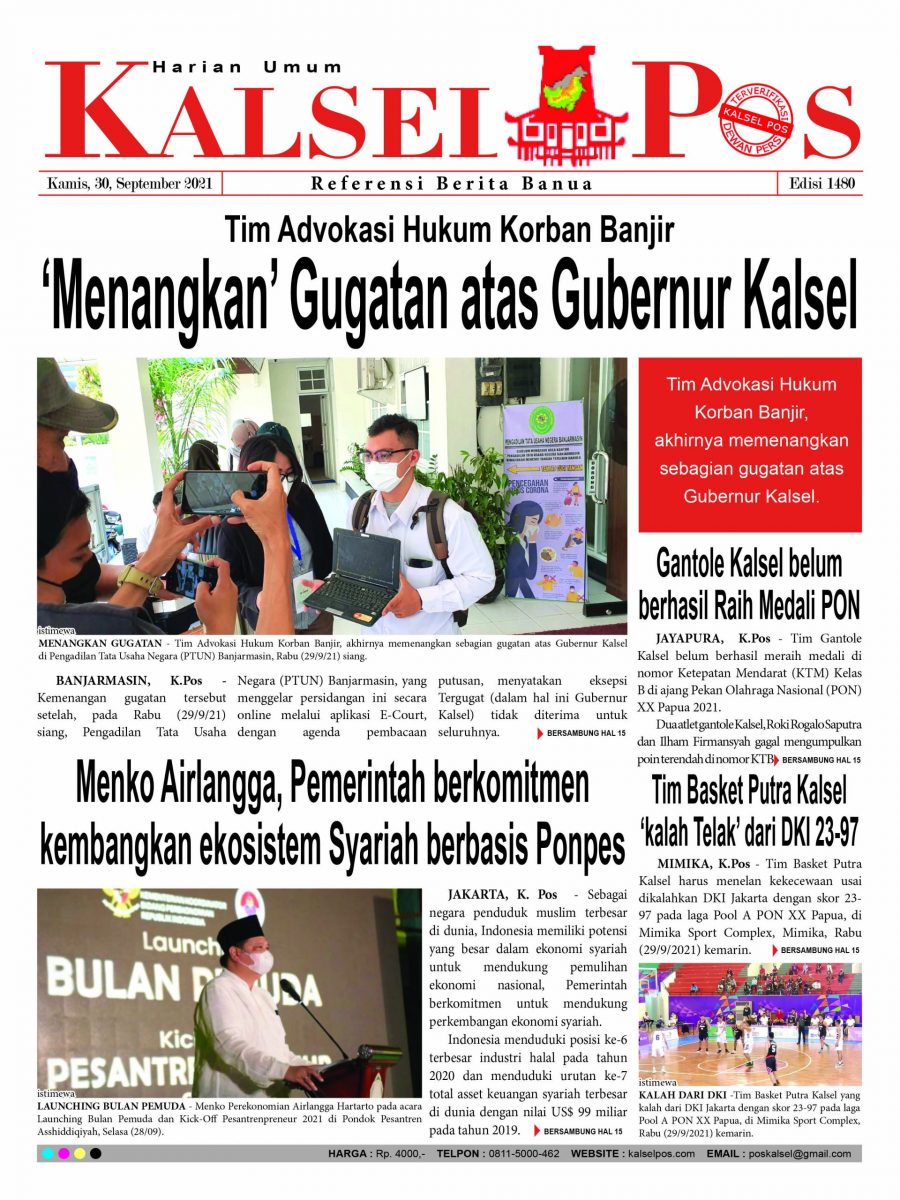 Tim Advokasi Hukum Korban Banjir, ‘Menangkan’ Gugatan atas Gubernur Kalsel . Epaper Kalselpos 1480 Edisi Kamis 30 September 2021
