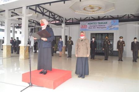 Upacara yang juga dihadiri Wakil Bupati H Rahmadian Noor, Ketua DPRD Saleh, Sekda H Zulkipli Yadi Noor dan seluruh anggota forkopimda ini bertindak selaku Inspektur Upacara Bupati Hj Noormiliyani AS dan Komandan Upacara Kabag Prokopimda Hery Sasmita SSTP MAP.